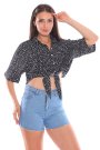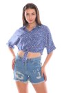 Önden Bağlamalı Mavi Salaş Kadın Gömlek