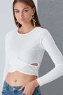 Önü Çapraz Crop Tasarım Kaşkorse Beyaz Bluz