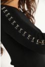 Siyah Triko Elbise Standart Beden Metal Çentik Detaylı