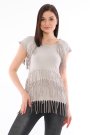 Viskon Kumaş Taş Rengi Yazlık Püskül Detaylı Kadın Bluz