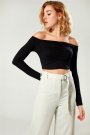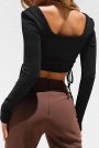 Yanları İp Büzgülü Kaşkorse Siyah Crop Bluz